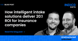 Center of Excellence Insurance Underwriting How intelligent intake solutions deliver 20:1 ROI for insurance companies March 7, 2023 by adamdev When you can automate insurance processes that used to take a week and instead tackle them in an afternoon, it has repercussions for the business that ādonāt stop,ā according to my most recent podcast guest. It means rethinking processes, creating new products, realizing a rather spectacular 20:1 return-on-investment, and more. On Episode 11 of Unstructured […] Read more Ā»