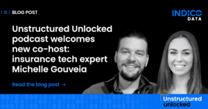 Insurance Claims Unstructured Unlocked Unstructured Unlocked podcast welcomes new co-host: Insurance tech expert Michelle Gouveia March 20, 2023 by adamdev The latest installment of my Unstructured Unlocked podcast was a special one, as we welcomed my new co-host, Michelle Gouveia of Sandbox Industries. Sandbox is a venture capital firm where Gouveia brings to bear her years of experience in the insurance industry to help drive investments in technology companies that show promise in addressing various […] Read more Ā»