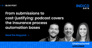Insurance Intelligent Intake From submissions to cost-justifying: Podcast covers the insurance process automation bases April 24, 2023 by adamdev Our latest Unstructured Unlocked podcast fired on all cylinders, as we touched on issues ranging from how to automate insurance claims processing ā even when lawyers are involved ā to who owns automation models, and how to cost-justify intelligent intake automation efforts. My co-host Michelle Gouveia and I welcomed as our guest Stacey Brown, who […] Read more Ā»