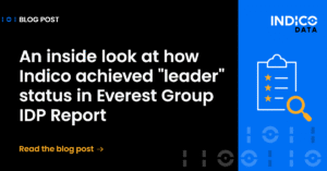 Intelligent Intake Unstructured Unlocked An inside look at how Indico achieved “leader” status in the Everest Group IDP report August 3, 2023 by adamdev In episode 25, Christopher M. Wells, Ph. D., Indico VP of Research and Development, and Michelle Gouveia, VP at Sandbox Insurtech Ventures, speak with Tom Wilde, Indico CEO, about Everest Group declaring Indico a leader in intelligent document processing ā and in delivering value. Listen to the full podcast here: Unstructured Unlocked episode 25 with […] Read more Ā»