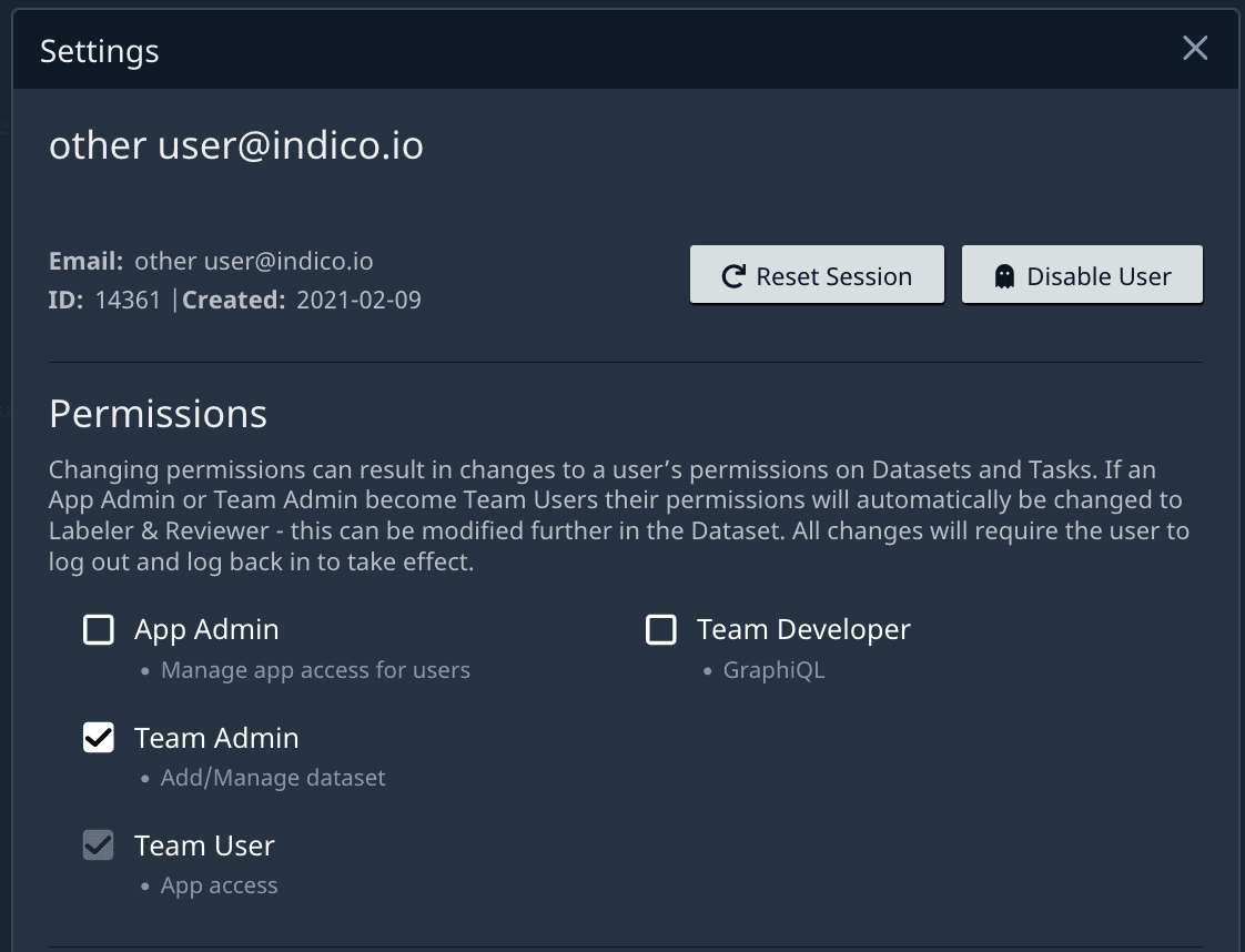 - A new role is available for Team Admin – creation of datasets will now only be available for this role and for App Admins.