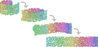 One strategy is to embed the high dimensional data into a smaller dimensional space. For visualization purposes, we generally try to reduce the number of dimensions to two. To build intuition, consider the following toy problem that has three dimensions. The input is points arranged in a curl. As humans, we can see that there is structure in this 3D representation, and we can use that structure to effectively unroll the 3D space and flatten it to a 2D space.