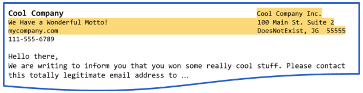 Take this simple example – we want to extract the entire address from this document. Simple left-to-right highlighting would not only capture the address but also the company motto and website that appears on the left.